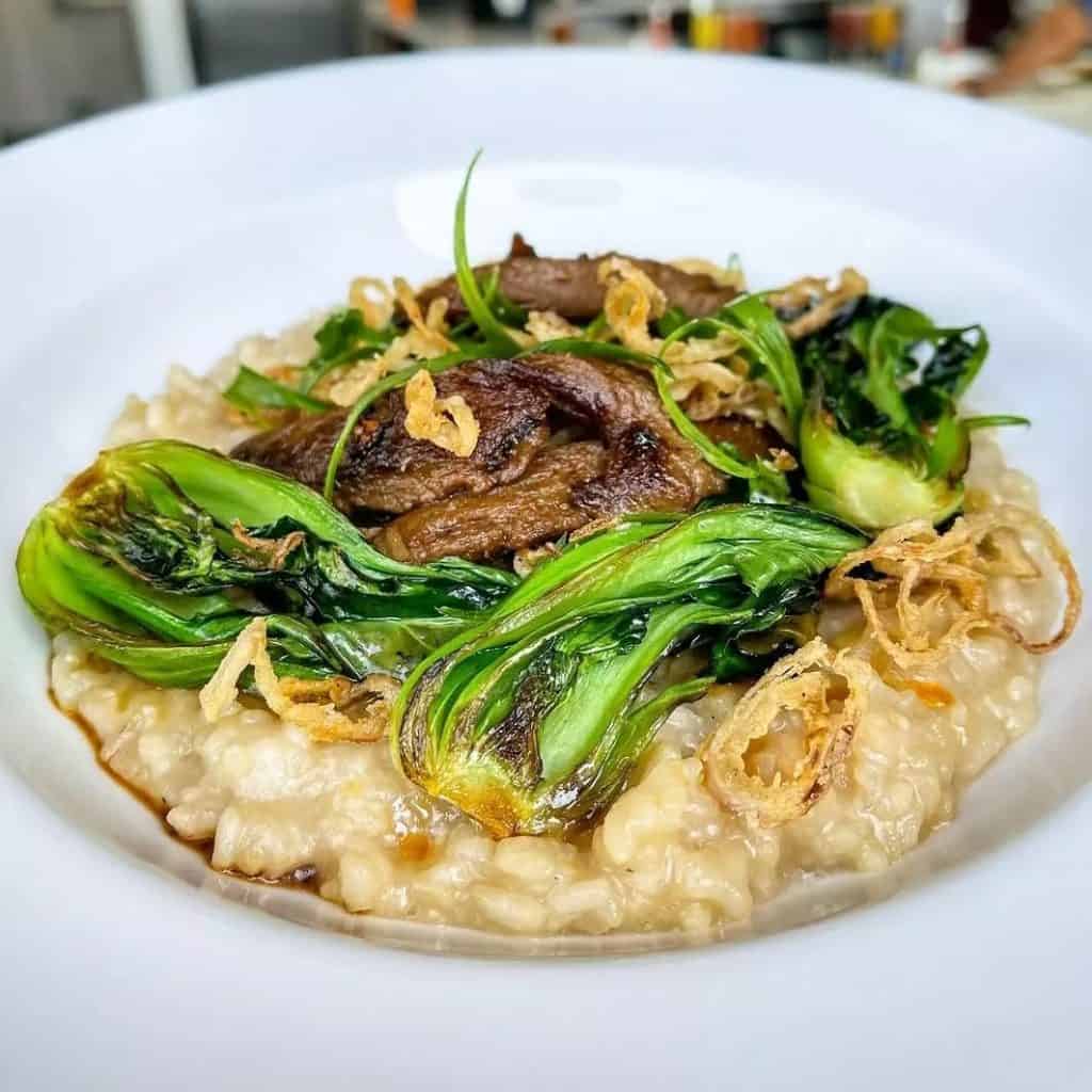 Earthy shiitake, oyster, or button mushrooms add umami depth to this vegetarian-friendly congee. The mushrooms’ meaty texture and savory flavor create a satisfying bowl that’s both comforting and wholesome, often enhanced with soy sauce, sesame oil, and fresh herbs for an aromatic finish.